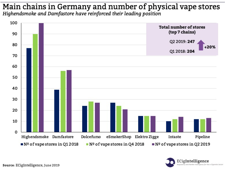Between Q1 2018 and Q2 2019 there has been a gradual increase in the number of vape stores for the leading chains, unlike other main chain stores which have not experienced major growth. This chart comes from the...