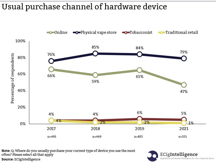 There has been a decrease in online device purchases in Russia, which could be due to the well-established logistics system in Russia and the opening of new vape stores ...