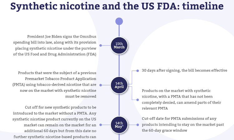 ECigIntelligence has put together a timeline outlining the major points to look out for over the summer as the US Food and Drug Administration (FDA) brings synthetic nicotine into the PMTA process ...
