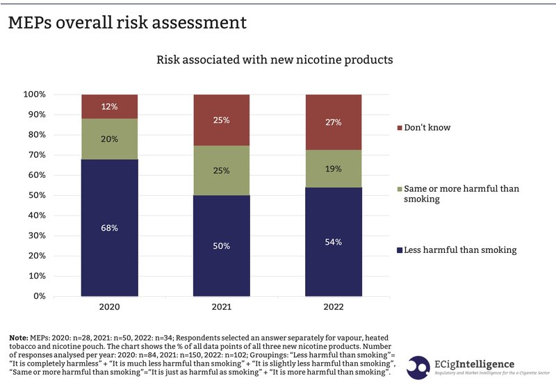 For example, more than three-quarters of responses from MEPs with knowledge say the products are less harmful than smoking, and only 4% of these responses say they don’t know about the risk.