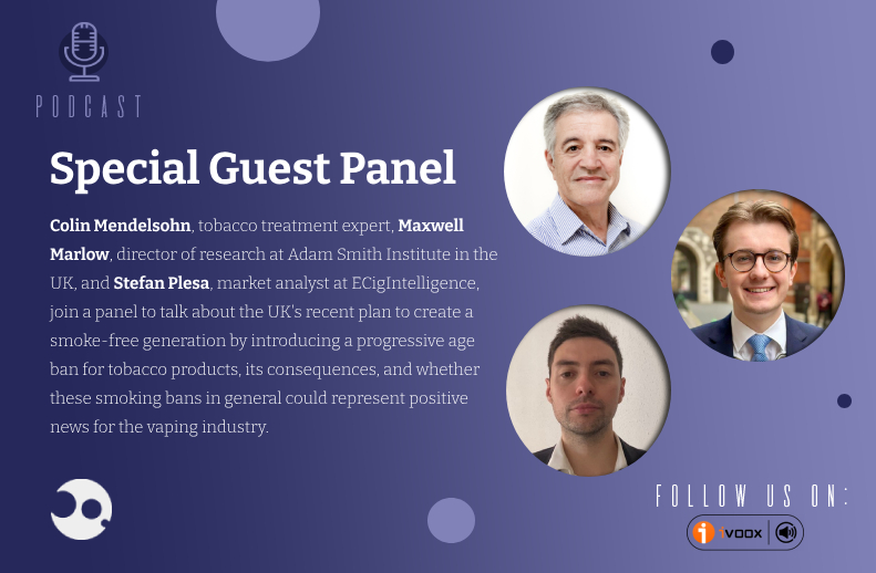 Colin Mendelsohn, a general practitioner for 27 years with a focus on smoking who now works exclusively in tobacco treatment in Sydney; Maxwell Marlow, director of research at Adam Smith Institute in the UK; and Stefan Plesa, market analyst at ECigIntelligence, join a panel to talk about the UK’s recent plan to create a smoke-free generation by introducing a progressive age ban for tobacco products, its consequences, and whether these smoking bans in general could represent positive news for the vaping industry.